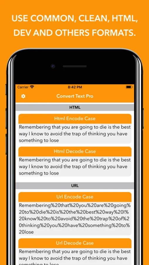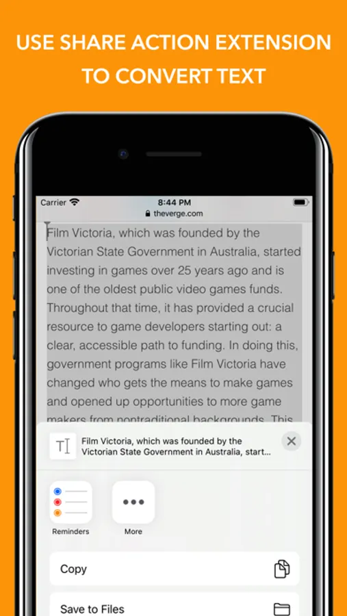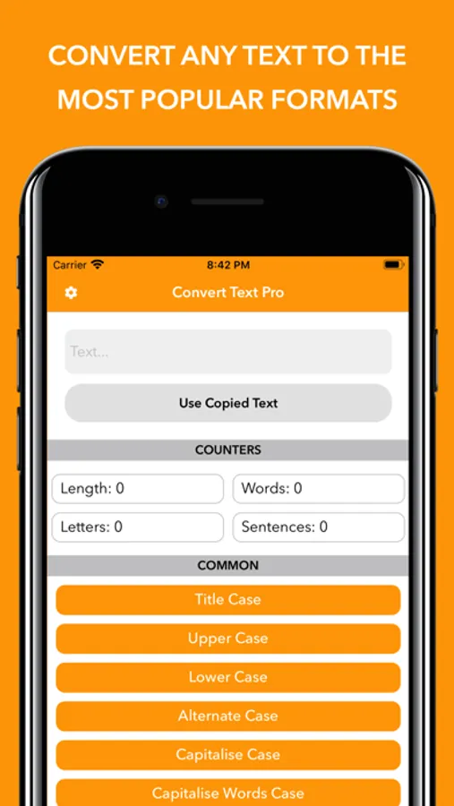 • Use Share Action Extension to copy any text from your favorite browser or note app and apply the transformations on the fly.