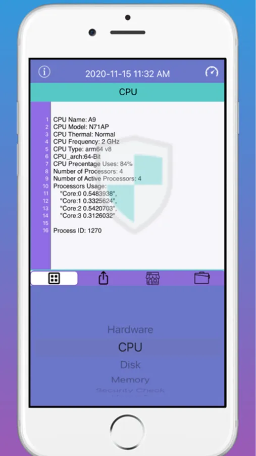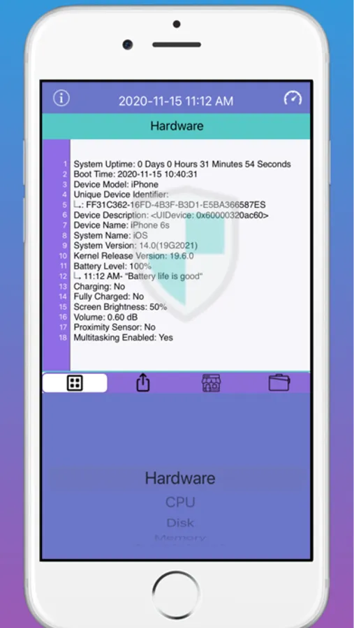 SISD Pro: (System Information & Security Diagnostic) This program will provide real-time system activity information monitoring for your iphone and ipad. The SISD shows 5 different types of the information usage, which are hardware, memory, disk, network and security check. SISD provides one thing that no other app has and that is the security check up. The brief information about security check functionality is to give the user an update about the device security. Be assured that there is nothing that will hurt your device. Also SISD security provides check ups to the previous operating system, especially if you have an (IOS) that can be cracked or encrypted.