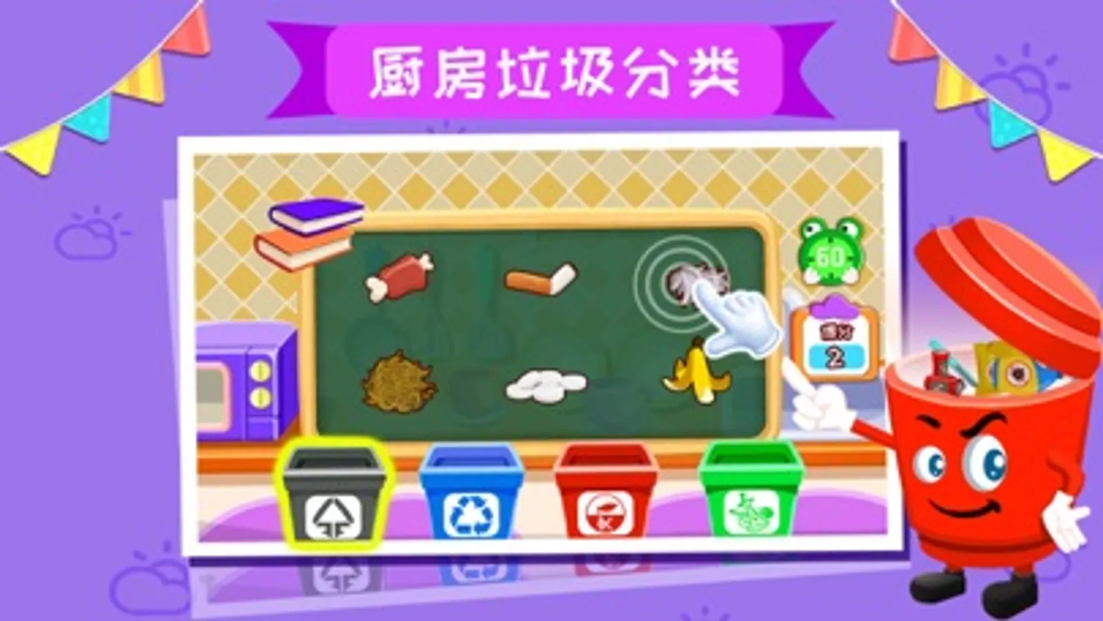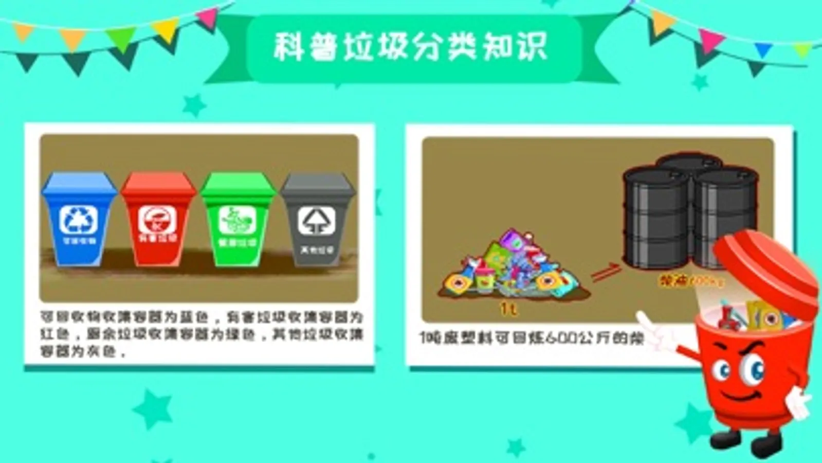 This software covers the complete encyclopedia of textbooks and materials for garbage classification. The content is vivid and interesting, so that children can easily learn to clean and sort garbage when playing games, help parents clean up household garbage, understand the benefits of waste recycling, and help them develop the interest of good habit of housework, love tidying up and cleaning.