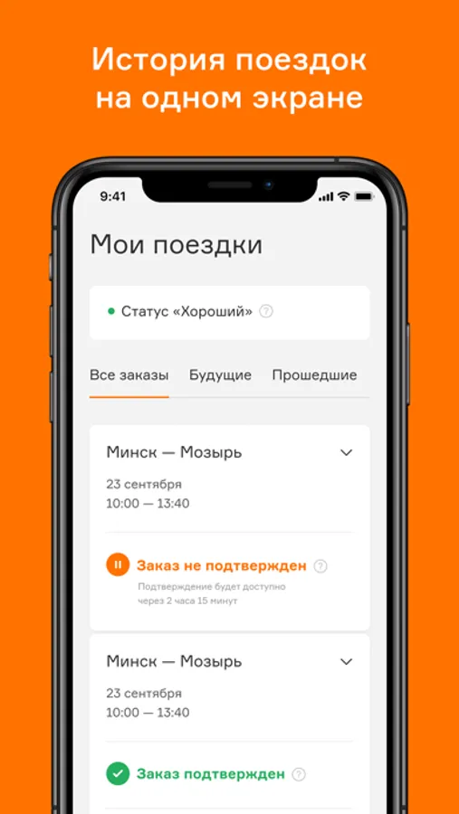 * личный кабинет с историей поездок и возможностью заказа за 30 суток до даты отправления;