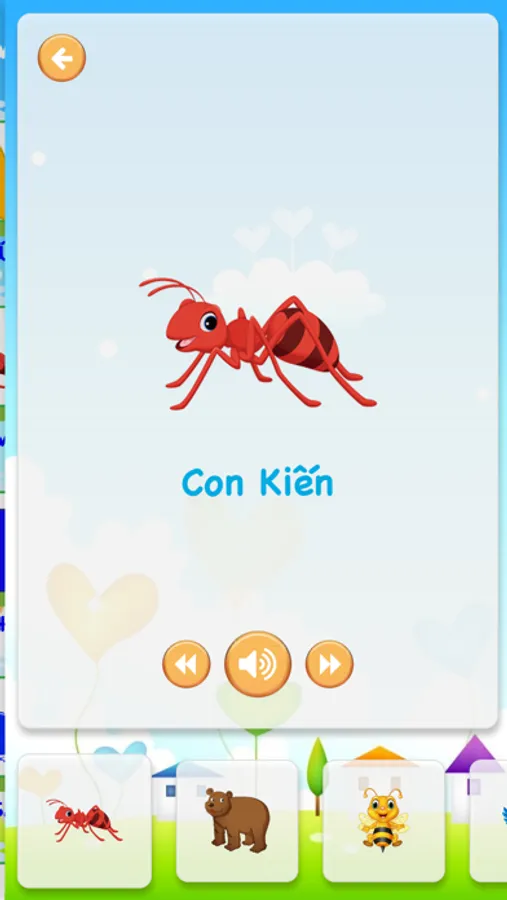 Các chủ đề với hình ảnh sinh động và dễ thương, khi nhấn vào một hình ảnh sẽ có âm thanh về tên của đối tượng đó. Âm thanh trong ứng dụng vui nhộn, chắc chắn các em sẽ rất thích thú.