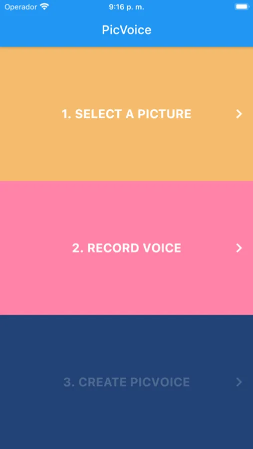 Just take a picture, pick one from the gallery or even search for GIFs in the in-app browser and record your voice. Then, you will have your PicVoice created and you can share it with your friends through WhatsApp, Instagram, etc.