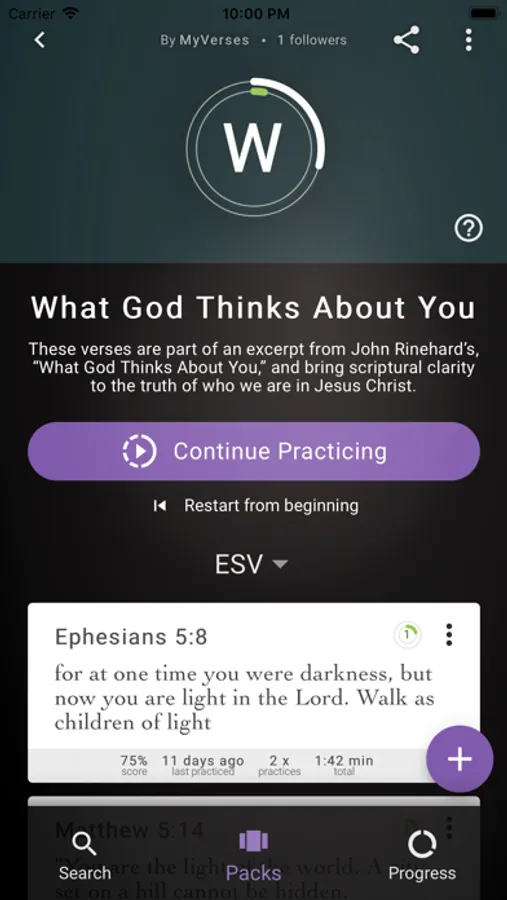 * Chose Verses: Choose from curated collections of verses or make your own verse packs