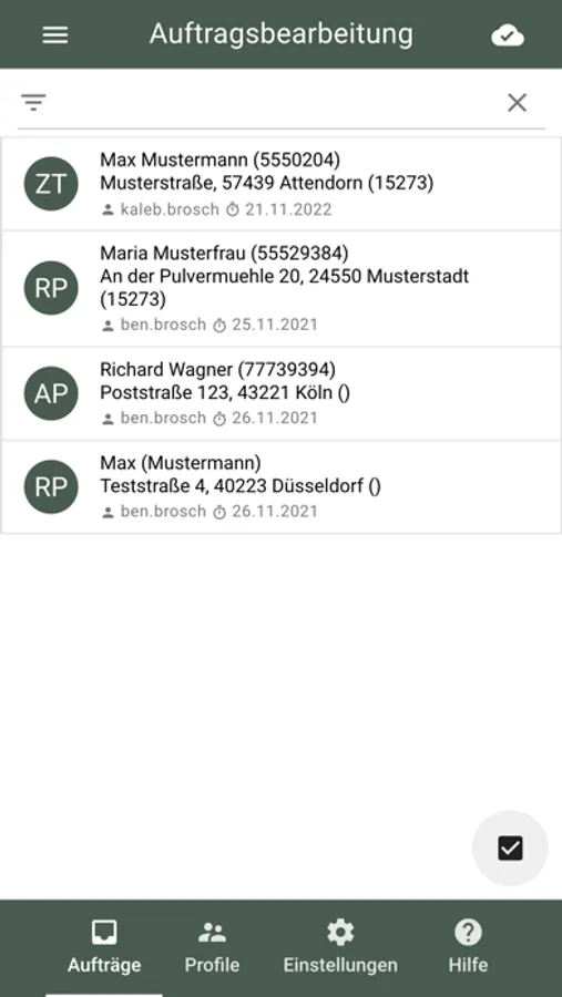 - Syncronisierung offener und erledigter Prüfaufträge per Cloud-Server