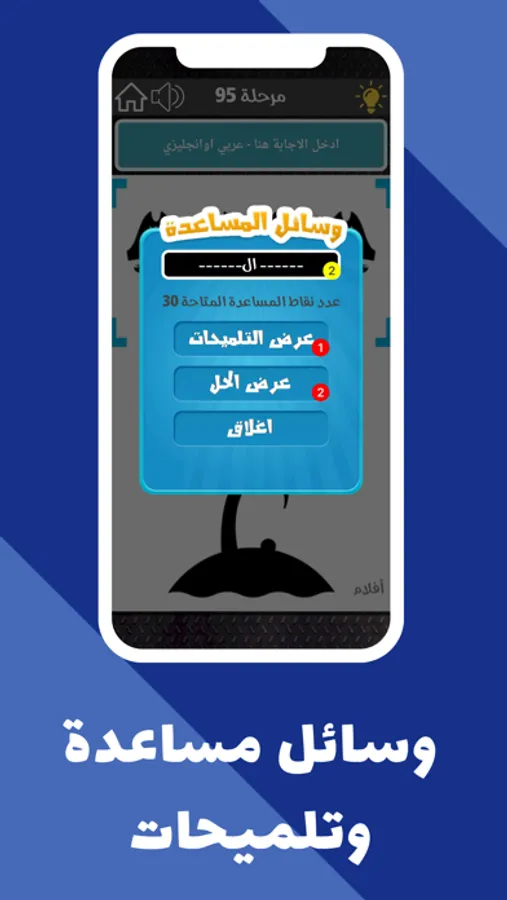 توجد وسائل مساعدة متعددة منها اظهار تلميحات تقودك الي الاجابة الصحيحة او أعطاءك الاجابة نفسها كما سيظهر امامك عدد الكلمات المطلوبة للحل وطول كل كلمة لمساعدتك في الوصول الي الاجابة الصحيحة