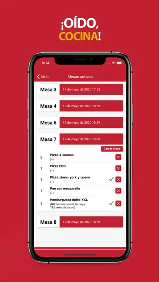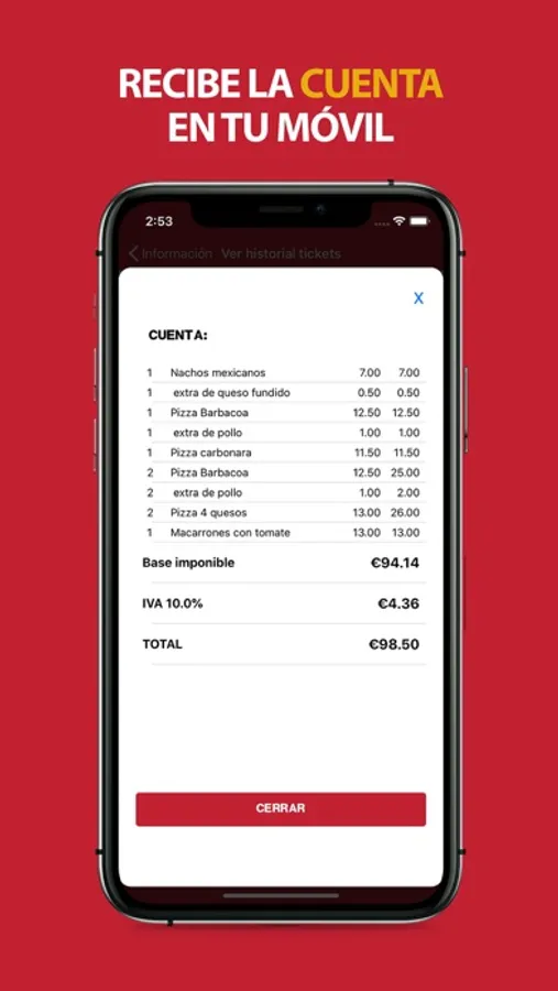 When you have finished, ask the waiter for the bill and he will send it to the App, so that you see your bill broken down as in the paper tickets, but without the need to print.