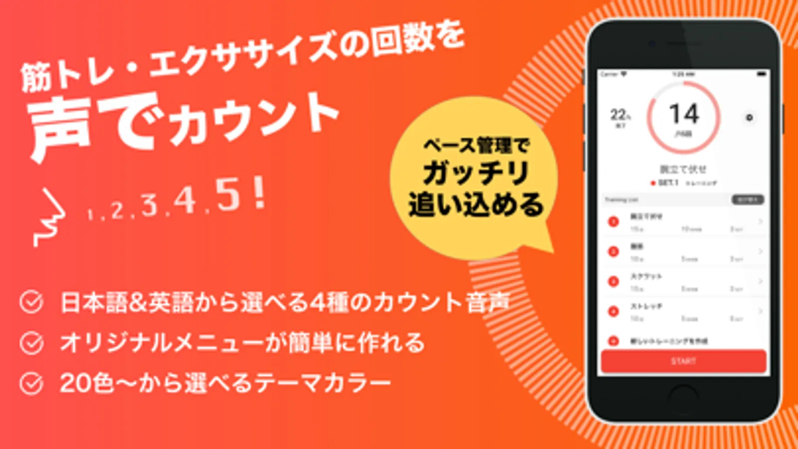 カウント音声を設定し、あなただけのオリジナルメニューを作ることができるので 、