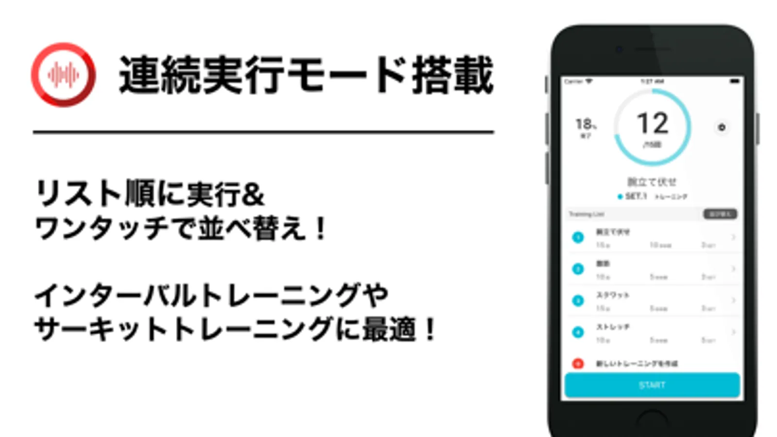 アプリを起動してメニューを選ぶだけで、すぐにトレーニングをはじめられます。