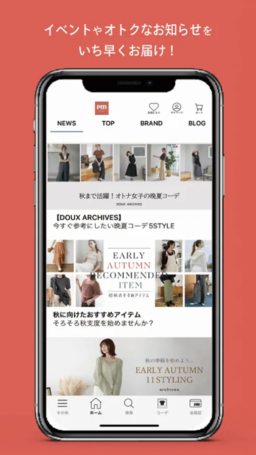 ブランドが発信する新着情報、アイテム情報、イベント情報をアプリでいち早くゲット!