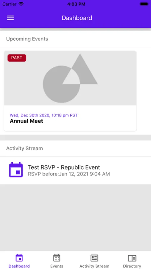 • Upcoming events.