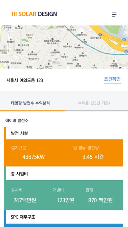 온라인 지도에 직접 맵핑 시뮬레이션, 최종 사업 수익성 검토까지 가능한 하이 솔라 디자인!