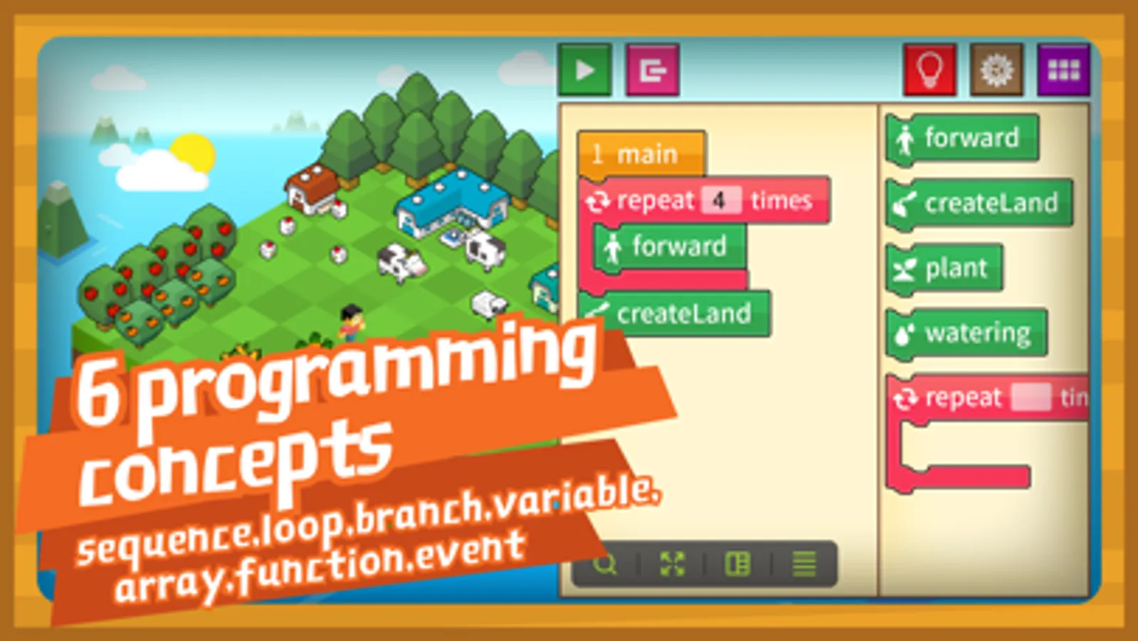 6 programming concepts: sequence, loop, branch, variable, submodule, event handling