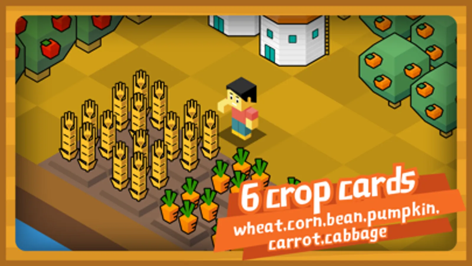 6 crop cards: wheat, corn, soybeans, carrots, pumpkins, cabbage