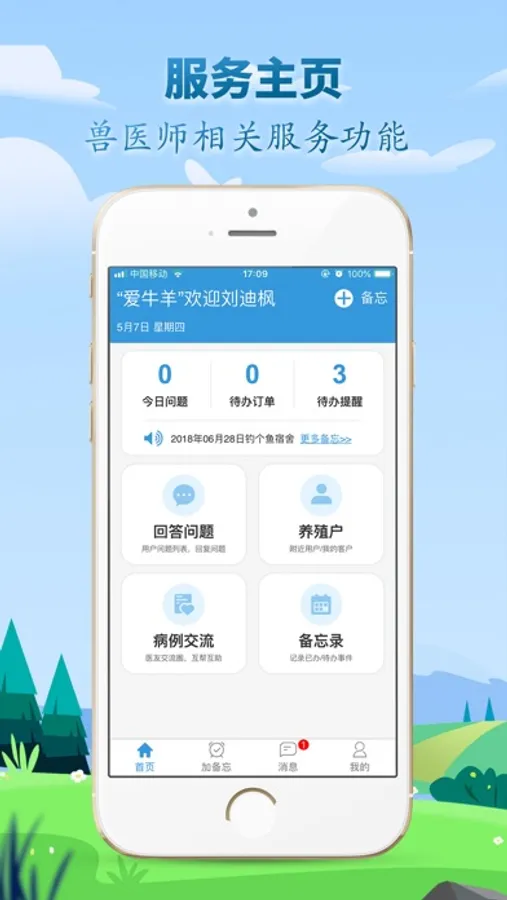 “爱牛羊管理端APP”以“动物更健康,食品更安全”为理念,致力于信息技术与养殖业深度融合,建立食品动物全生命周期的健康监测和检测系统,连接供应链数据平台,保障我国动物健康和居民食品安全。“爱牛羊管理端APP” 与中国畜牧业协会、中国兽药协会、国家现代农业产业体系及农业科研院校等合作,搭建基于全国养殖区域分布的线上线下融合的新型服务站,助力我国中小规模养殖场户,促进我国养殖业转型升级和绿色发展。
