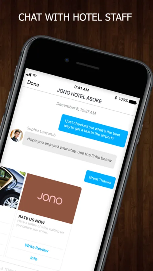Welcome to the Jono Hotels application. Here to aid you in having a better experience in all our hotels, the Jono app is your one and only destination partner, telling you all you need to know about the destination and letting you in on all the local happenings. The Jono app also connects you directly to the hotel crew, allowing you to order room service, chat with the team in your native language, and give you absolute control of your room environment. Browse more information about your chosen hotel, or discover other locations for future adventures. The Jono app puts the world at your fingertips, so download our app and join the Journey of the Nomad.