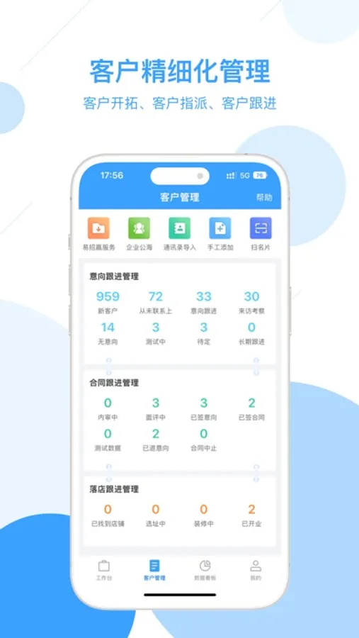 居美商管家是一款专注于家居建材企业的SAAS(软件即服务)招商管理工具,提供代码给企业,通过不同的部署模式面向不同规模的企业客户。居美商管家是基于对家居建材行业招商全过程的分析研究,商管家实现了 客户管理、团队管理、数据分析 三大核心功能,有效解决了企业在招商管理过程中存在的“任务落地难”、“过程跟进难”、“结果统计难”、“数据留存难”的问题,帮助企业快速提升招商转化率,让招商更容易!