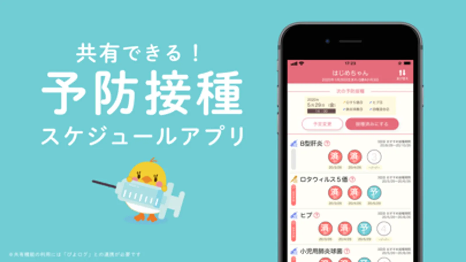 ぴよログ予防接種は、目安時期を確認しながら予防接種をスケジュール管理できるアプリです。