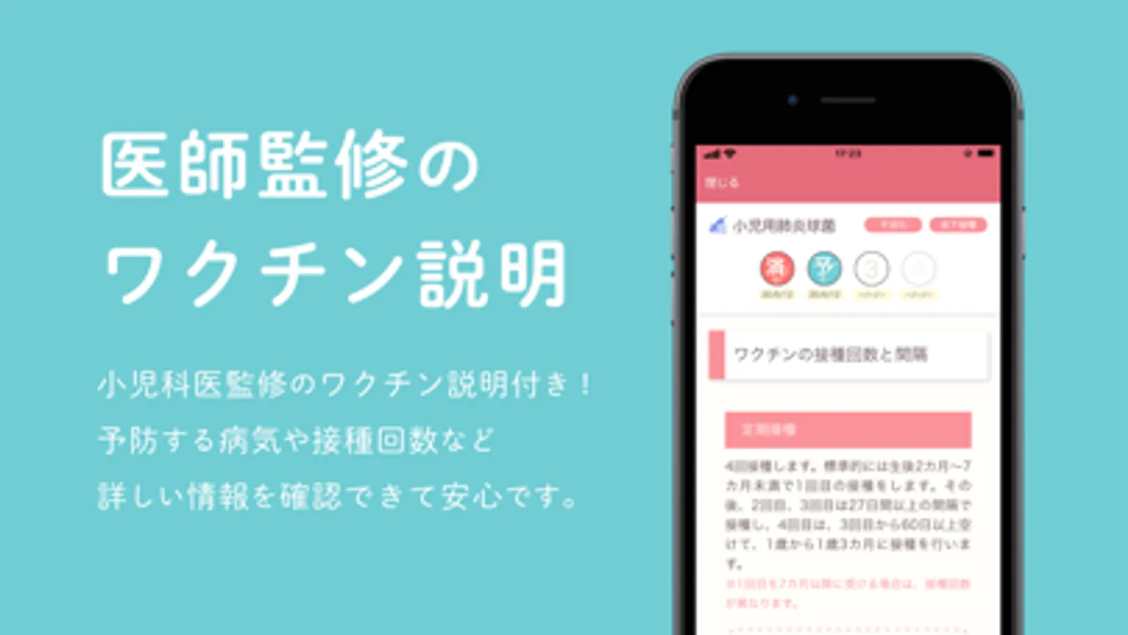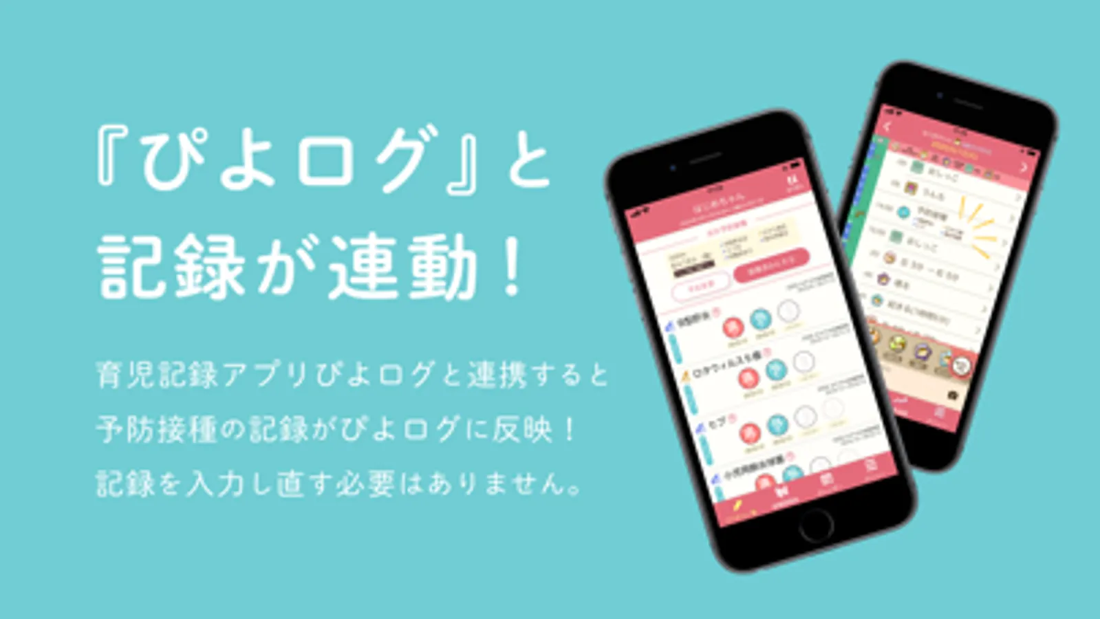 生後2ヶ月から始まるワクチン接種、種類も回数も多く段取りが大変!何を接種していて何が残っているのか、見やすく管理し易いアプリになっています。育児記録「ぴよログ」との連携機能により、夫婦でスケジュールを共有したり育児記録側に予防接種の記録を反映させたりすることができます。
