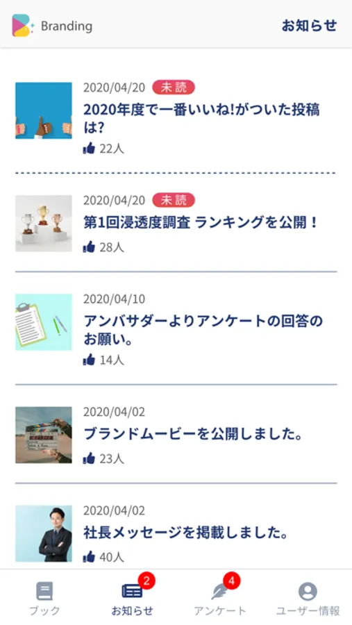 ・投稿したお知らせに従業員が「いいね!」する機能があります。