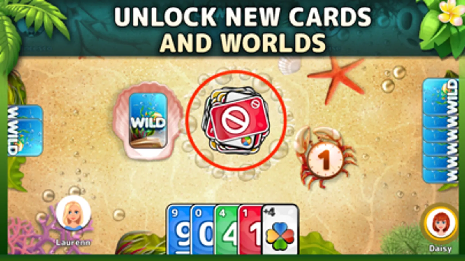 With WILD, you can play cards anywhere and everywhere! Throw a WILD card party with players from all over the world or play online card games with friends. Then flip through different adventures and themes in the offline mode to unlock chests with amazing prizes! You will definitely feel like you are on vacation as you upgrade your luxurious island, even on a workday.