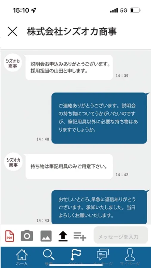 企業からのメッセージの受け取りはもちろん、気になることを気軽に聞けます。