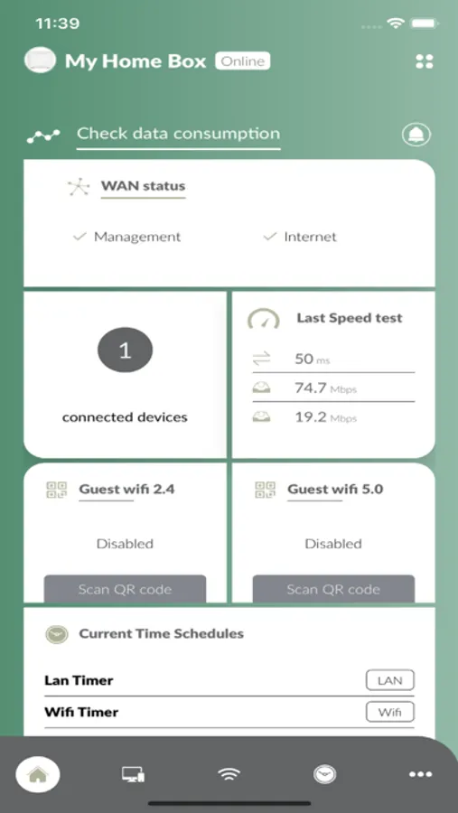• Enable/ disable Main or Guest Wi-Fi as well as display the related QR code