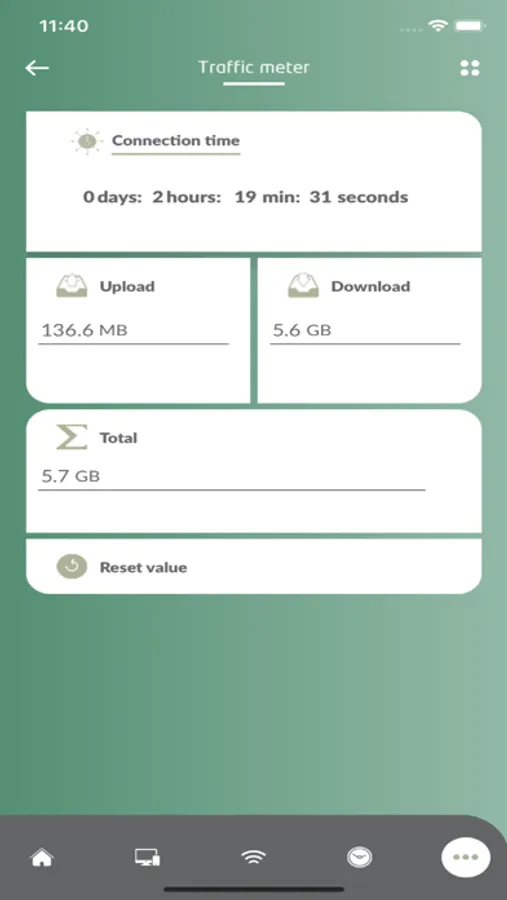 ▪ Thanks to the traffic meter section, you will be able to check your consumption since last boot as well as the last reset value. Check how long your S3 router has been running.