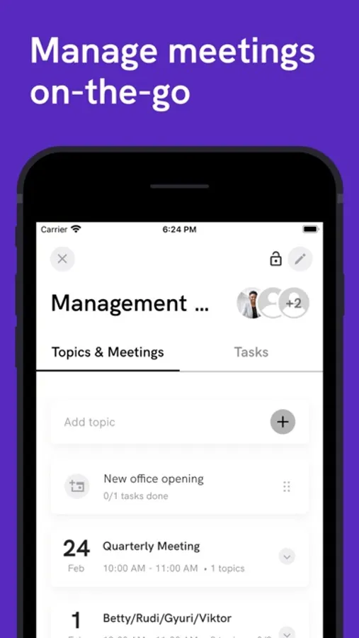 Deescus allows you to easily collaborate with others whether you are jotting down stuff to discuss with someone on-the-go or taking part in a formal meeting. You can easily create group or 1-on-1 conversations, setup meetings, think about topics to discuss and create followup tasks in just a few clicks.