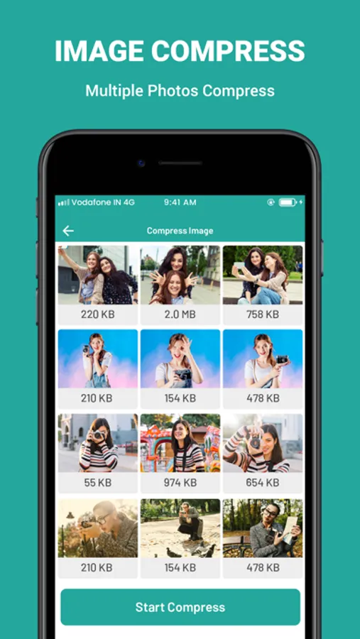 Photo Compress & Resize uses smart lossy compression techniques to reduce the file size of your photos.