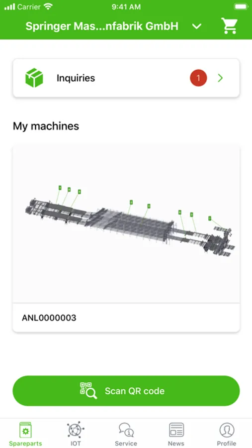 • In 4 steps to your spare part from SPRINGER - quick and easy spare part orders thanks to an integrated QR scanner and machines marked with QR codes