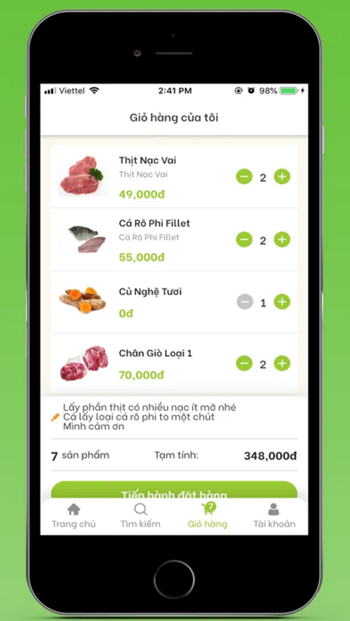 sẽ chuẩn bị tất cả thực phẩm cần thiết cho món ăn của bạn.