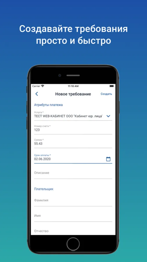 • Информируйте клиента о выставленном требовании на оплату путем рассылки по e-mail с формированием QR-кода
