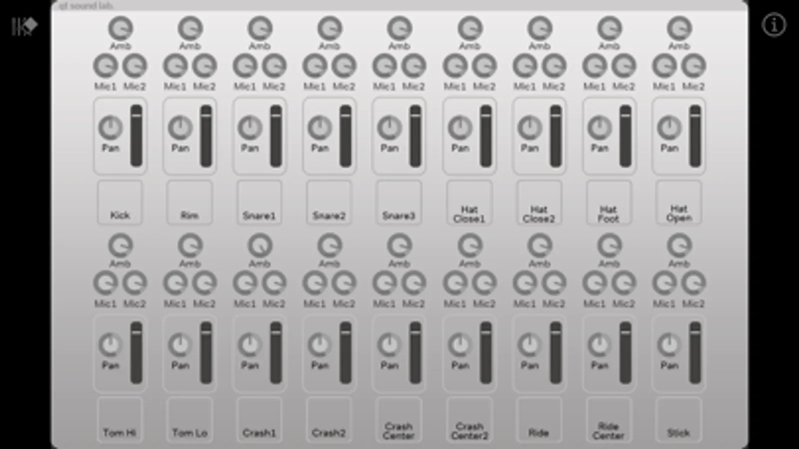 - Each part has 3 samples recorded with different microphones, and you can easily control their balance