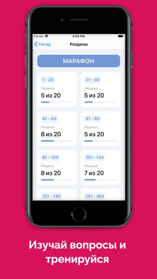 Тренировка - пройди тест из 50 вопросов, которые изучил. Вопросы будут идти в рандомном порядке.