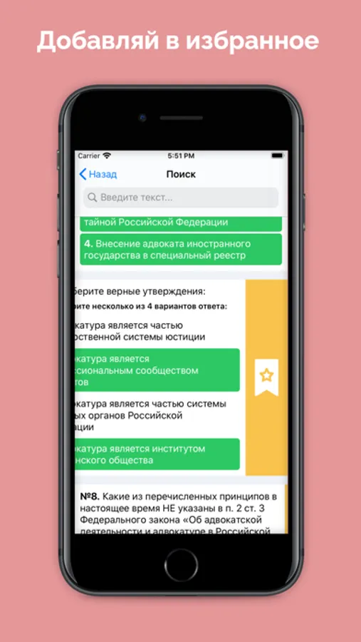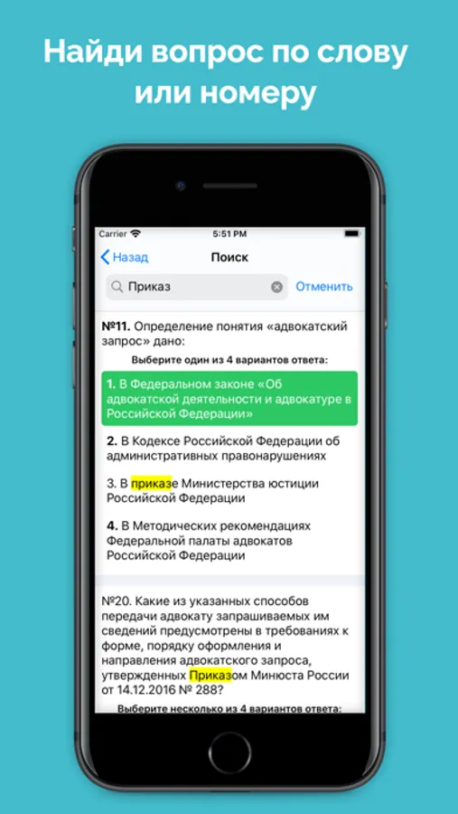 Приложение поможет подготовиться к сдаче экзамена на присвоение статуса адвоката.