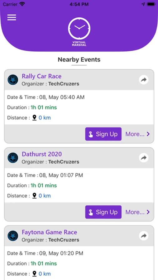 For participants Virtual Marshal ensure snag free time stamping while they concentrate on the event route and navigation. Multiple map tools are at hand to help navigate using familiar map background on screen. Users also get information of nearby events that could interest them.