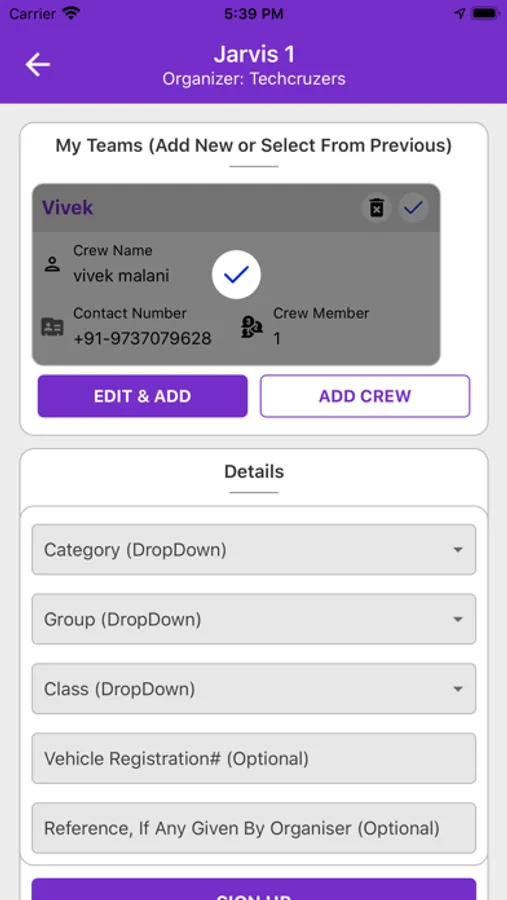 * Multiple events sign-up