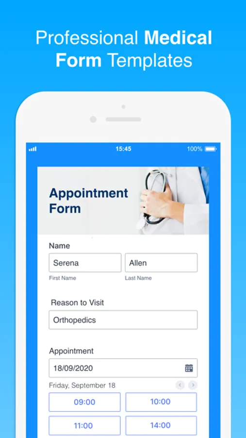 Arrange medical appointments, schedule voice or video calls, receive meeting requests, and more. Patients can easily book appointments by selecting a date and time on your form. With our Google Calendar integration, appointments booked through your form will automatically become events in your calendar.