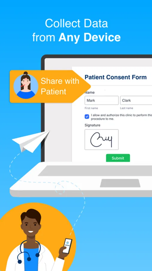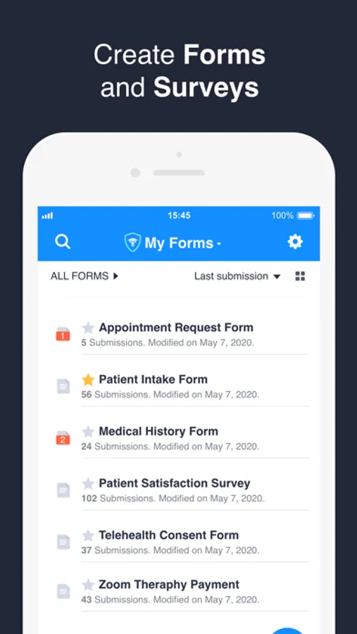 - Create and manage patient registration forms, consent forms, intake forms, self-assessment forms, screening forms, emergency forms, surveys, and more!