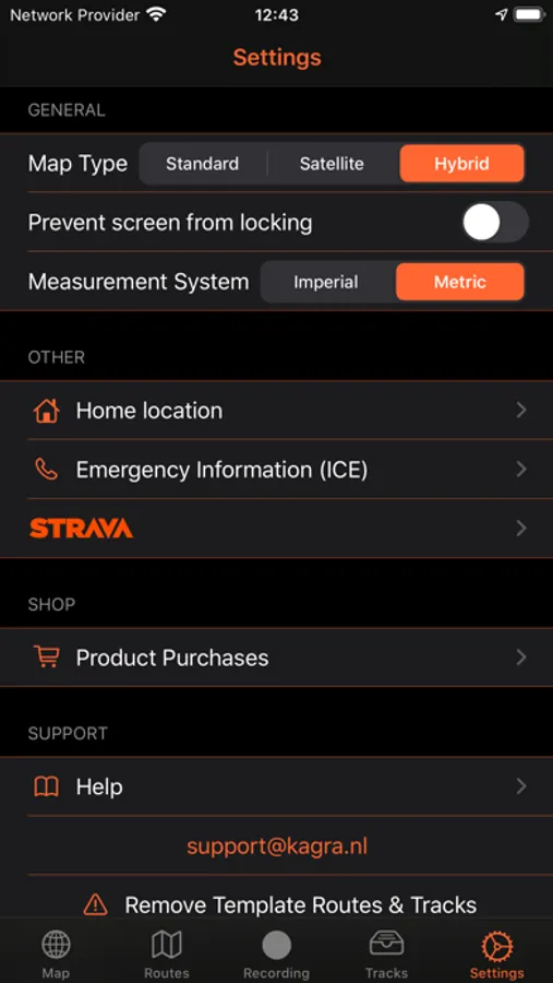 Routes and Tracks can be shared with any other App by exchanging a GPX File. Routes can be directly imported from Strava too. With the build in Recorder you can record your own Route.