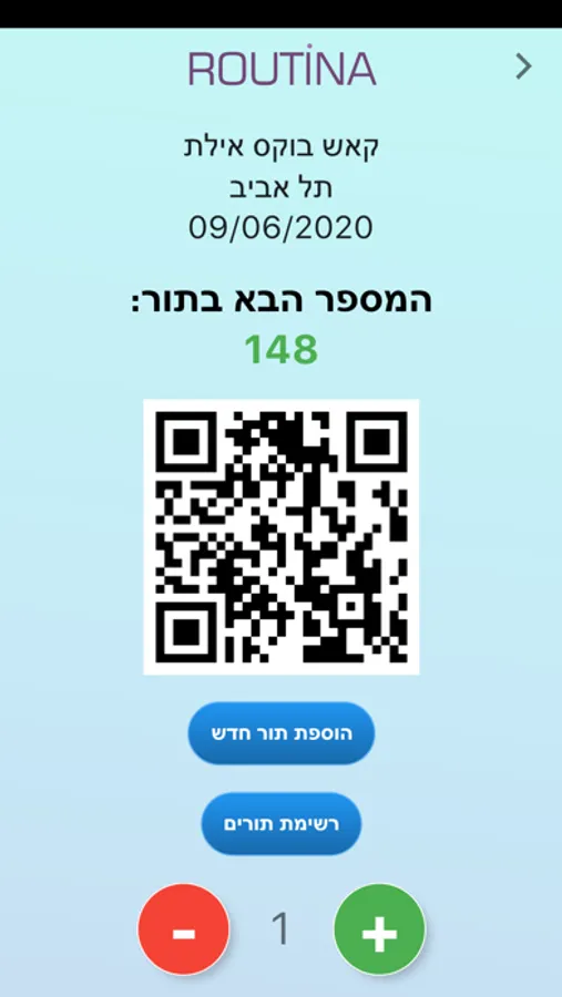 מהיום לא עומדים בתור לעסק! פותחים חשבון חדש ברוטינה, ומנהלים את התור בצורה חכמה ויעילה. באפשרות הלקוח להוריד גם הוא את האפליקציה, לקבל מספר בתור על ידי סריקת ברקוד- ללכת לטייל ולהתעדכן שמגיע תורו.