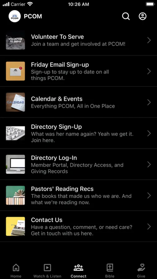Welcome to PCOM Connect! When you download our app, you're just a click away from joining us for worship every Sunday @ 10am or catching up on-demand at any time during the week.