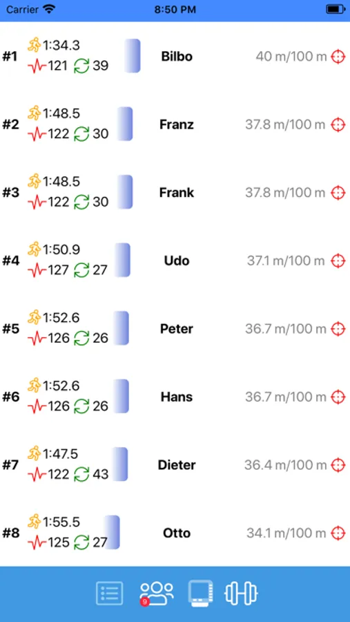 This mode comes in two flavors, either match race others in the same workout or simply keep each other company. The ranking let's you see how everyone is doing.