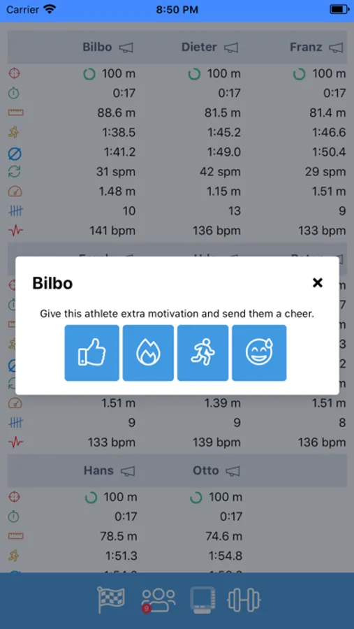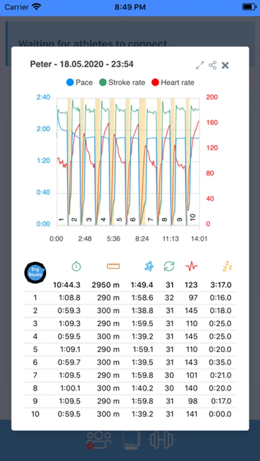Just like at a real regatta, you can invite your friends and coaches to be on the side lines rooting for you. Receive cheers from them in real-time during your workout.