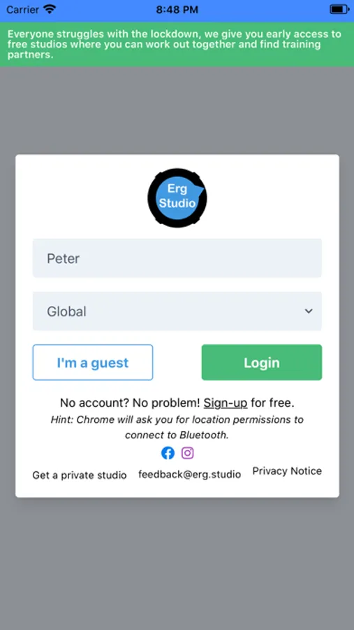 Erg studio let's you create virtual rooms to work out with your crew and others in real-time regardless if they are next to you or thousands of miles away.