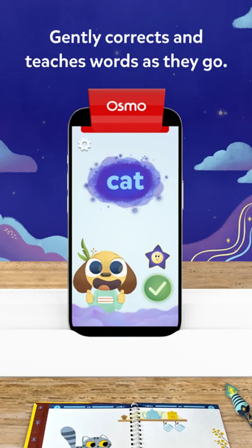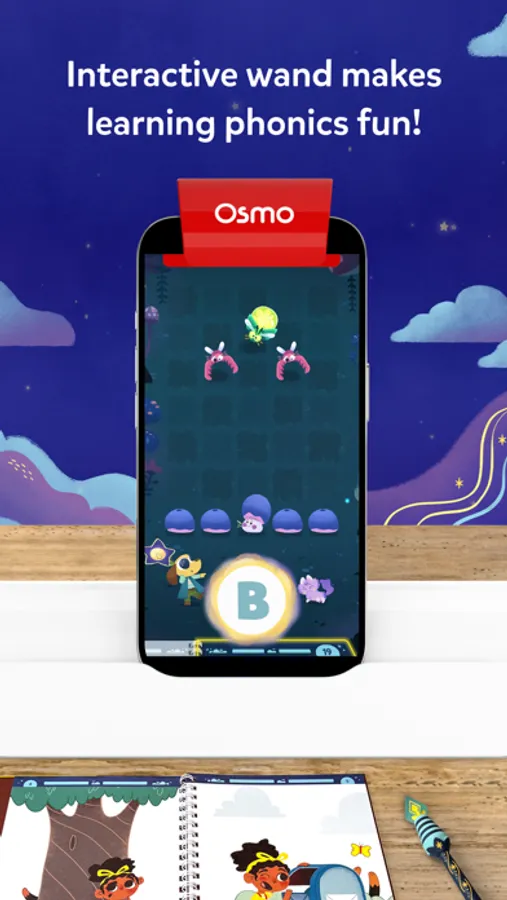 Reading Adventure primarily focuses on reading books aloud. But in seeking out the elusive dream creatures, the player will find themselves face-to-face with fun phonics, sight word and comprehension challenges that use the Osmo Crystal Wand! These games adjust their difficulty to correspond to the current reading level of a child and the specific books they are using.