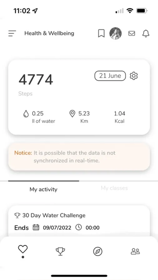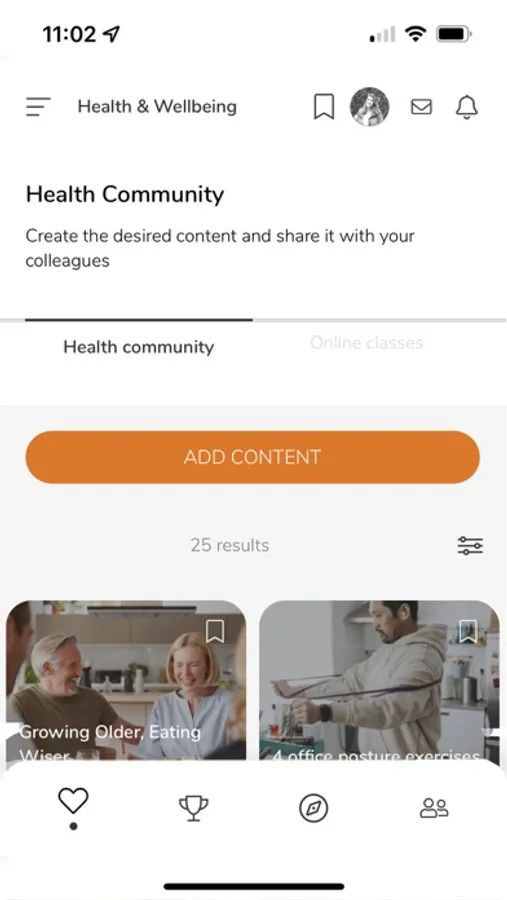 The health and well-being module allows you to share relevant content with your colleagues to maintain healthier lifestyle habits as well as help you improve your daily physical activity through data by integrating the device's health app