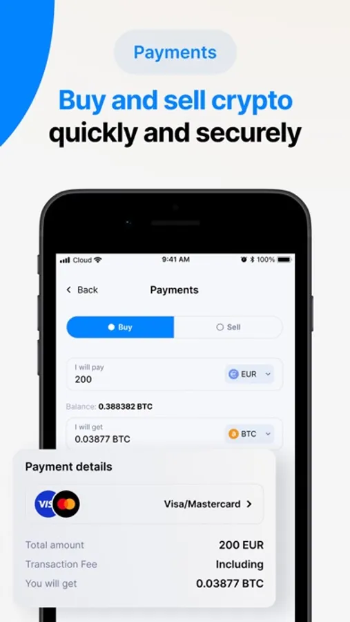 Purchase Bitcoin BTC, Ethereum ETH, Tether USDT, and other cryptocurrencies using credit cards, bank transfers, Apple Pay / Samsung Pay / Google Pay.