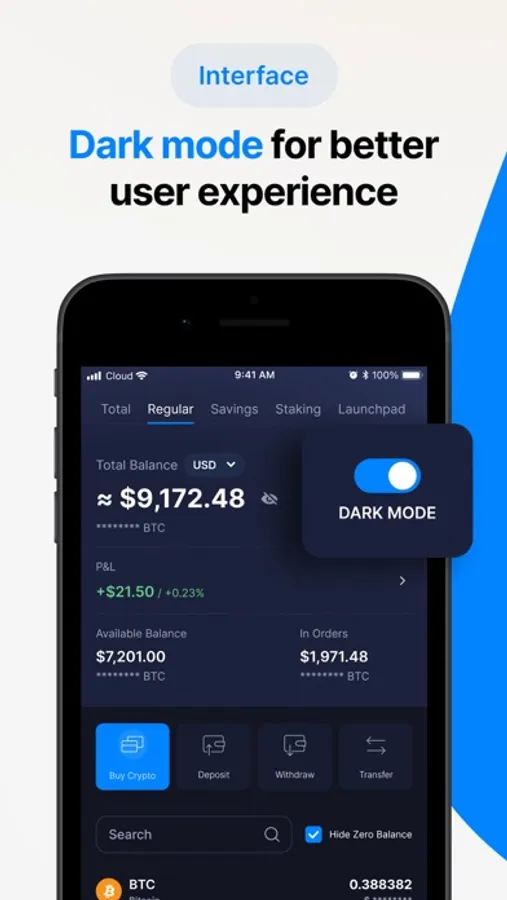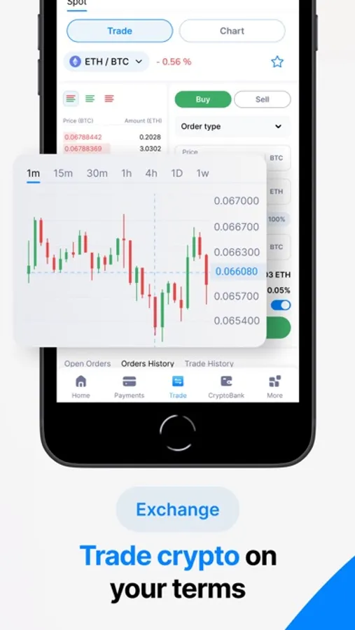 Our mobile apps are available in 18 languages. Also, be sure to check out the Crypto School section, where you can find and learn useful information on working with crypto assets.