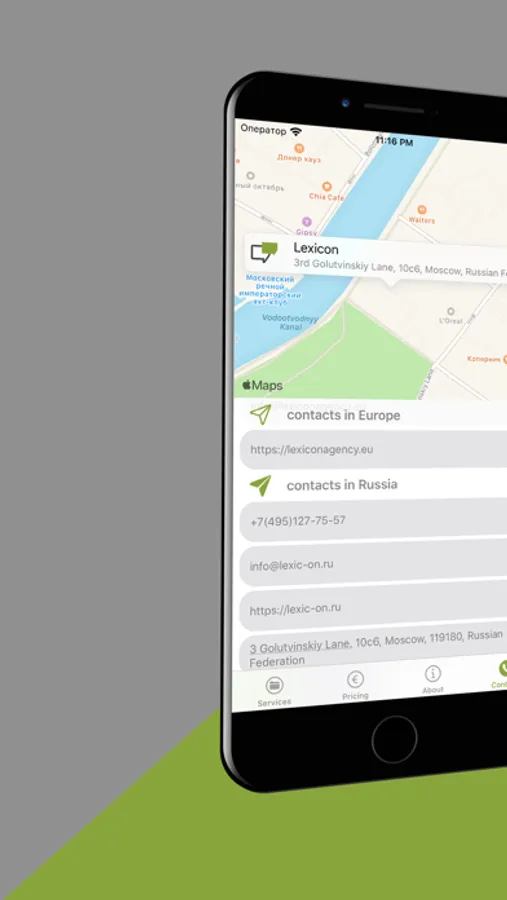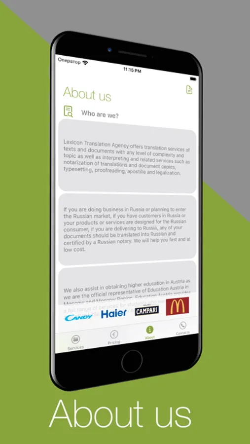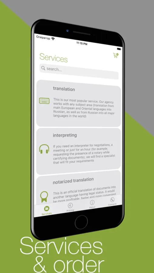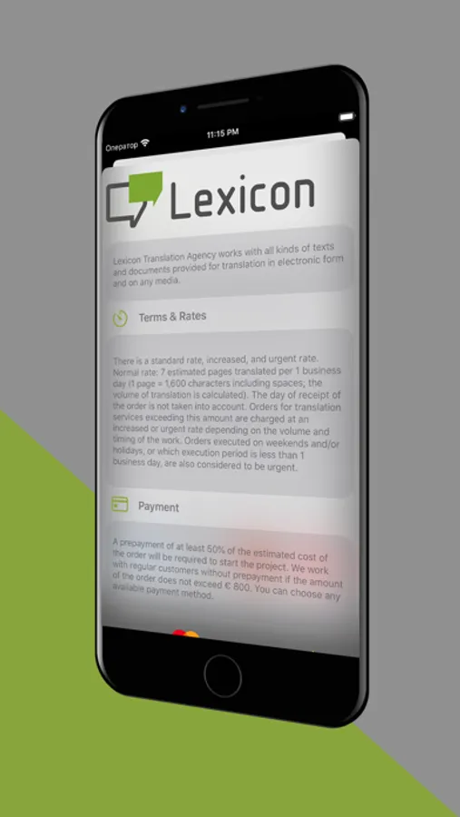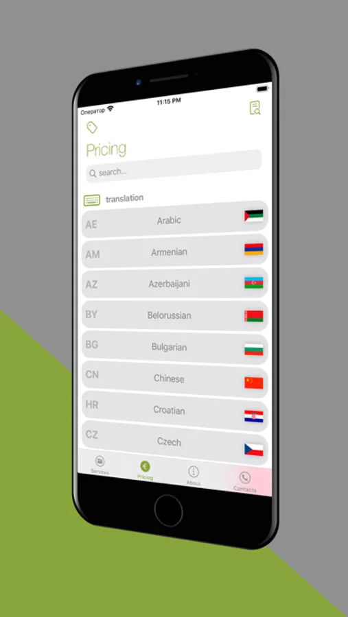 - use "Prices" tab to get a discount coupon for translation. Save it in your Apple Wallet and share it with friends and colleagues - they will also get a discount for translation